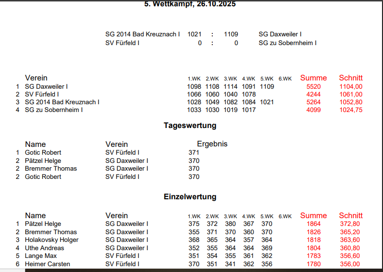 Mannschaft 1 = Tabellenführer in der Kreisoberliga und die Schützen von Rang 1 bis 4 alle von der SGI Daxweiler